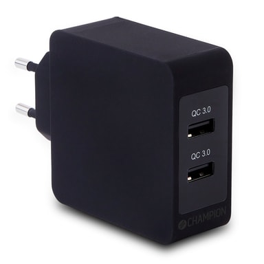 Snabb och kraftfull väggladdare med dubbla USB-portar i metallhölje med styrka på 3A för att ta hand om dina laddningsbehov. Laddarens portar är utrustad med Quick Charge 3.0 vilket gör det möjligt att ladda 80 % av batteriet på bara 35 minuter. Det som behövs är en mobiltelefon eller annan enhet med stöd för Quick Charge. USB-A portarna går givetvis bra att använda även för enheter utan stöd för Quick Charge. Använd laddaren för laddning av enheter som mobiltelefoner, surfplattor, powerbanks, kameror, hörlurar, bärbara spelkonsoler m.m.