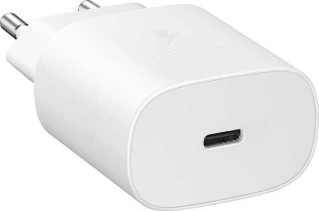 Samsung 25W USB-C Fast Charging -seinälaturi lataa laitteitasi jopa 25 W teholla Samsung Super Fast Charge- ja Power Delivery -teknologioiden avulla.