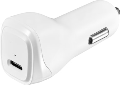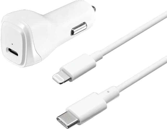 • Sandstrøm 18W PD autolaturi USB-C - Lightning kaapelilla (valkoinen)