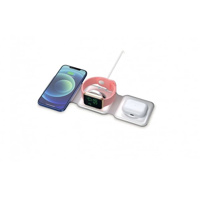 Tiger 3-in-1 Magsafe-laturi langattomalla iphone magsafe -latauksella, Applen kellolaturi ja Airpod-laturi. Tuotteessa on kaksi langatonta latausalusta (toisessa magsafe), langaton Airpod-laturi ja Apple-kellon laturi (mukaan lukien latauspistoke). Kaikki mitä tarvitset on liittää virtalähde. Tiger-laturi on taitettava, joten se on täydellinen matkustamiseen. Se voidaan taittaa niin, että voit ladata vaaka- tai pystysuoraan.
