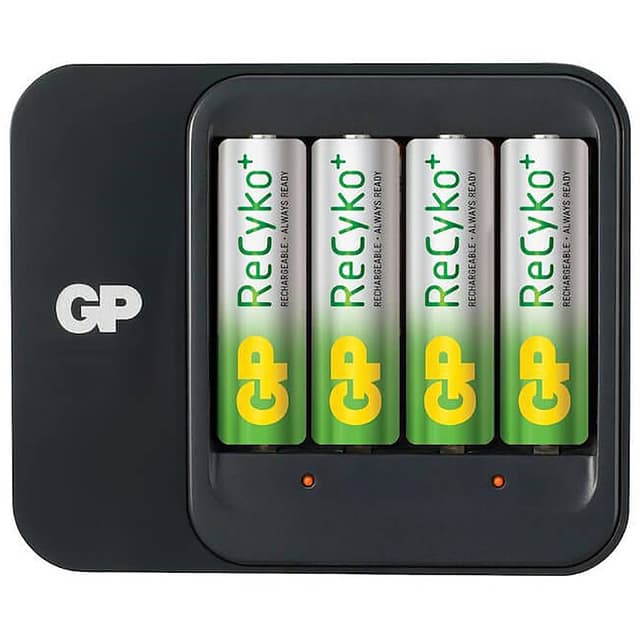 Kompakti ja kestävä GP ReCyko PB550 -laturi AA NiMH -paristoille säilyttää varauksen jopa vuoden ajan, joten virtaa on taatusti saatavilla tarvittaessa. Pakkauksen sisältyy 4 kappaletta 2100 mAh AA NiMH -paristoa ja 12 V laturi.
