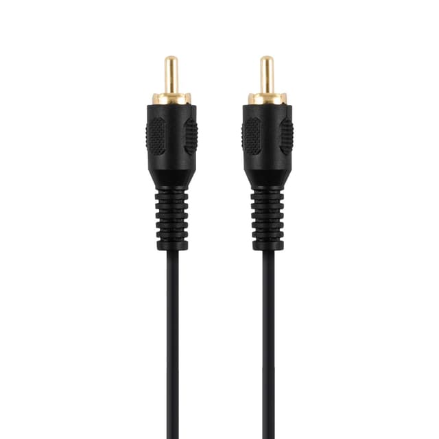 Audio / videokaapeli, jossa 1 RCA - 1 RCA, 75 ohmin kaapeli ja täysin valetut liittimet. Kuvan yhdistämiseen kahden laitteen välillä. Voidaan käyttää myös digitaalisen äänen kytkemiseen.