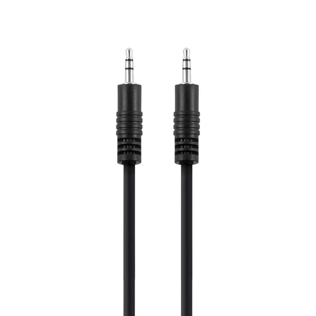 Vakioäänikaapeli 3,5 mm uros - 3,5 mm uros. Täysin valetut kontaktit. Käytetään liittämään esim. yksi kannettava äänilaite toiseen äänilaitteeseen.