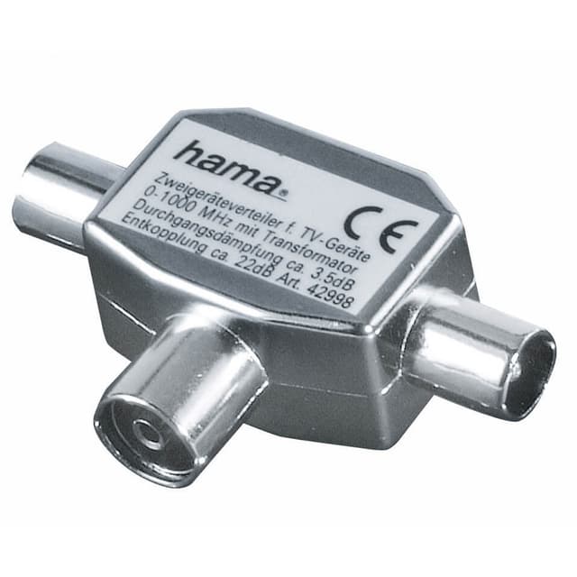 Koaksiaalikannalla ja kahdella koaksiaalipistokkeella varustettu Hama-antennijakaja jakaa antennin signaalin kahteen televisioon.Tutustu ominaisuuksiin