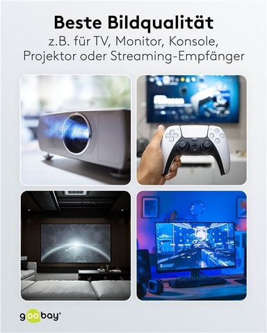 Erittäin nopea HDMI™-kaapeli yhdistää televisiot ja näytöt pelikonsoleihin, kuten PlayStation 5:een tai Xbox Series X:ään, sekä projektoreihin ja suoratoistovastaanottimiin, kuten Amazon Fire TV:hen tai Apple TV:hen.