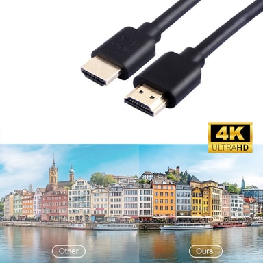 HDMI-kaapeli nopealla ja luotettavalla äänen, videon ja valokuvien siirtonopeudella. Täydellinen HDTV-näytön, tietokoneen näytön tai projektorin liittämiseen. Tarjoaa kristallinkirkkaan äänenlaadun ja parhaan visuaalisen kokemuksen ultrakorkealla 4K-resoluutiolla.