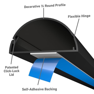 D-Line Trunking -kaapelikanava on fiksu tapa piilottaa sotkuiset kaapelit kotona tai toimistossa. Sen 1 metrin pituus kiinnittyy tukevasti vahvalla itseliimautuvalla taustalla, joten poraamista ei tarvita. Sileä, puolipyöreä muotoilu avautuu helposti kaapeleiden asettamista tai säätämistä varten ja sulkeutuu tiukasti, tarjoten siistin ja modernin lopputuloksen, joka voidaan myös maalata tilaan sopivaksi.