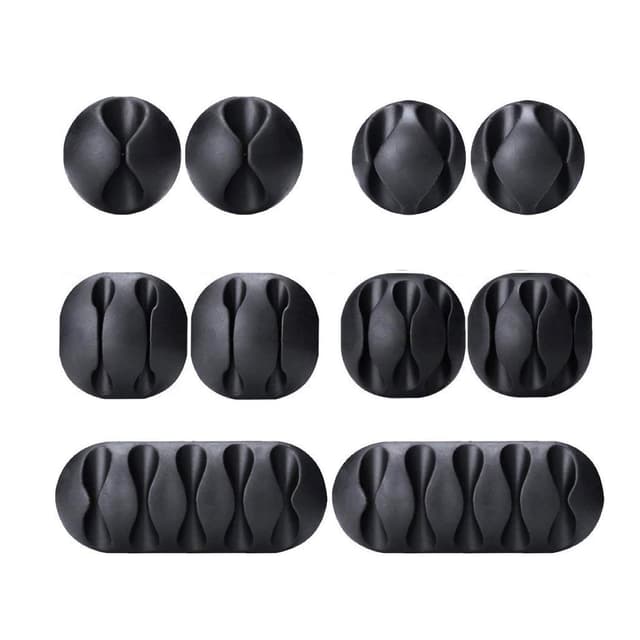 Järjestyksen säilyttäminen: Nämä erikokoiset kaapelipidikkeet varmistavat, että kaapeleiden ja johtojen sotku pöytäsi ympärille on järjestetty. Voit esimerkiksi piilottaa ne pöytälevyn alle ja johtaa johdon suoraan pistorasiaan.