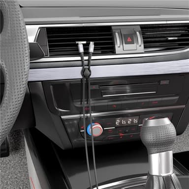 Tämä joustava kaapeliohjain kiinnittää kaapelit kädensijalle ja estää latauskaapeleiden tai muiden USB-liitäntöjen liukumisen pöydän taakse ja alle. Se soveltuu erinomaisesti myös kaapelien reitittämiseen pöydän alle.