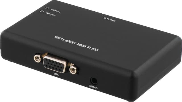 Deltaco VGA – HDMI -adapterilla voit yhdistää vanhemman VGA-lähtöliitäntää käyttävän tietokoneen uudempaan näyttöön HDMI-liitännällä. Adapteri sisältää 3,5 mm ääniliitännän ja muuntaa analogiset signaalit digitaalisiksi jopa 1080p-resoluutiolla.