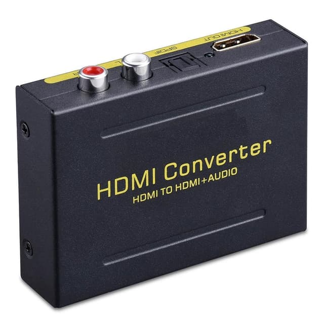 HDMI-HDMI +ääni jakaja, joka erottaa HDMI-signaalin äänen. Audiojakaja yhdistää HDMI-tulon HDMI (Pass Mode) -lähtöön ja ääni annetaan SPDIF-muodossa (optinen digitaalinen ääni - 2CH / 5.1CH-tila) ja analogisena 2xRCA R / L -äänenä (2CH-tila).