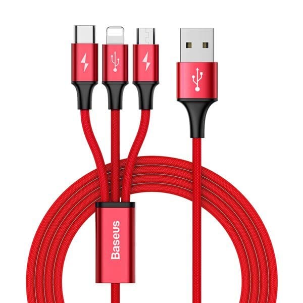 Baseus 3i1 Rapid USB-kabel 3A 1,2m Röd