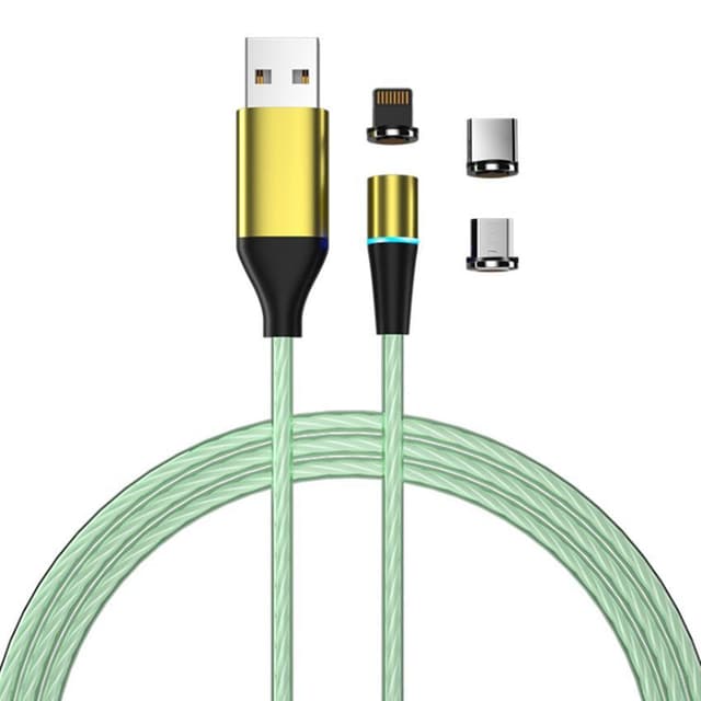Jos tarvitset latauskaapelia puhelimeesi, meillä on etsimäsi tuote. Tämä all-in-one latauskaapeli ei ole vain laturi, vaan mukana on monia hienoja ja hyödyllisiä ominaisuuksia. Mukana on kolme erilaista liitintä, Micro USB, USB-C ja Lightning, jotka voit helposti vaihtaa. Voit siirtää tiedostoja matkapuhelimen ja tietokoneen kautta ja tietysti käyttää sitä matkapuhelimen akun lataamiseen. Latauspistokkeita voidaan käyttää sekä puhelimen lataamiseen että laitteen latausportin suojaamiseen pölyltä. Kaapeli- ja laturin pistokkeet on kytketty toisiinsa magneetin avulla, joten ne voidaan erottaa toisistaan helposti. Kun pistoke on kiinnitetty kaapeliin, se tarttuu voimakkaasti magneetin avulla. Tämä johto ei sotkeennu solmuille, joten sen käyttöikä on pidempi kuin muiden lataus-kaapeleiden. Vältä sotkeutumiset ja pidät latauskaapelin hyvässä kunnossa. Toinen ainutlaatuinen ominaisuus on, että latauskaapelissa on LED-valaistus. Sen avulla kaapeli ja puhelimesi on helppo löytää pimeässä. Väri: vihreä Toiminto: Lataus ja tiedonsiirto Liitäntä: USB-A / MicroUSB - USB-C - Lightning (iPhone) Kuoren materiaali: PVC / alumiiniseos Lanka: Punottu nylon-lanka Sähkövirta: 3A