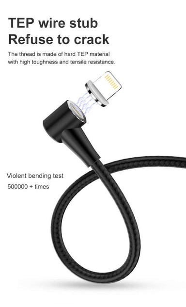 90° L-muotoinen muotoilu ja 360° kääntyvä magneettipää: 90° L-muotoinen ja 360° kääntyvä magneettipää tekevät käsittelystä mukavan ja joustavan esimerkiksi pelatessa. Sotkeutumaton nylonkaapeli on kestävä ja joustava.