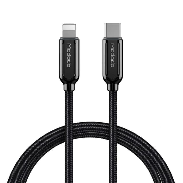 Power Delivery tukee iPhone8:aa ja uudempia. Tuki PD 18 W, 30 W, 45 W, 61 W, 65 W ja 87 W USB C -latureille ja varavirtalähteille. Yhteensopiva kaikkien Apple-tuotteiden kanssa Lightning-liitännällä (iPhone, iPad, iPod) Yhteensopivuusluettelo: Yhteensopiva iOS: n ja kaikkien Applen Lightning-tuotteiden kanssa. Tuki PD Fast Chargelle 3 A (maks.), iPad Prolle 10,5”/12,9"" (1. ja 2.) sekä iPhone 11/11 Pro/11 Pro Maxx/XS/XR/X/8 Plus/8 (maks. 5 V/2,4 A), iPhone 7/7 Plus/6/6 Plus/6S/6S Plus (maks. 5 V/1 A), iPad 9.7"", iPad Pro 9.7”, iPad Air 9.7"", iPad Touch jne. Tekniset tiedot: Materiaali: Sinkkiliitännät, nailonpunottu kaapeliPituus: 1,2 mVäri: MustaLähtö: 14,5 V 2 AToimii sekä synkronointiin että lataukseen