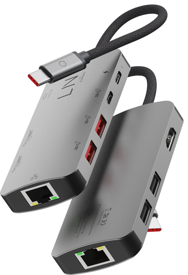 LinQ 8in1 8K Pro USB-C -hubin avulla voit liittää oheislaitteesi kannettavaan tietokoneeseesi helposti neljän USB-A-portin ja kahden USB-C-portin avulla, joissa on virransyöttötuki.. HDMI-portit tukevat jopa 8K @30 Hz yhteyttä ulkoiseen näyttöön.Tutustu ominaisuuksiin