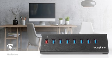 • Nedis USB-keskitin | USB Micro-B Female | USB-A Female | 8-Porttinen port(s) | QC3.0 / USB 3.2 Gen 1 | USB Virta / Verkkovirtakäyttöinen | 5 Gbps | 8x USB