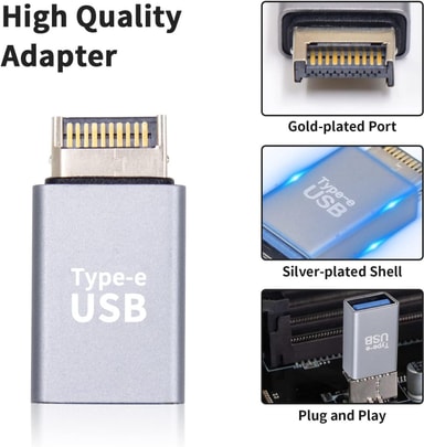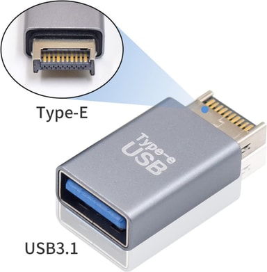 NÖRDIC Type-E uros-USB-A-naaras mahdollistaa USB-A 3.1 -kaapelin liittämisen emolevyn USB Type-E -porttiin. Sovitin tukee tiedonsiirtonopeutta jopa 10 Gbps ja 100 W virransiirtoa.Tekniset tiedot: