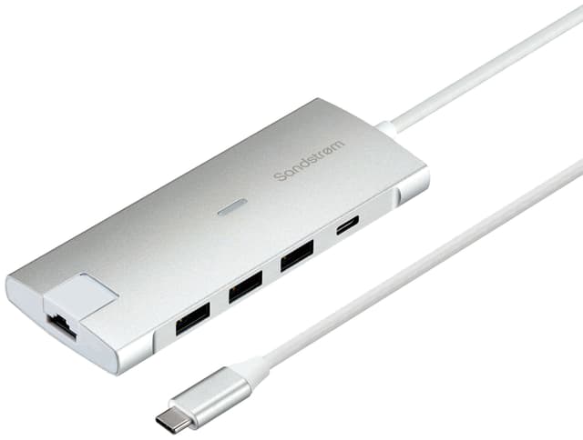 8-porttinen Sandstrøm-USB-C-hubi tarjoaa lisäliitäntävaihtoehtoja kannettavaasi, sillä siinä on kolme USB-A-porttia, USB-C-portti 100 W Power Delivery -virransyötöllä, HDMI-portti, SD- ja MicroSD-korttipaikat sekä Ethernet-portti.Tutustu ominaisuuksiin