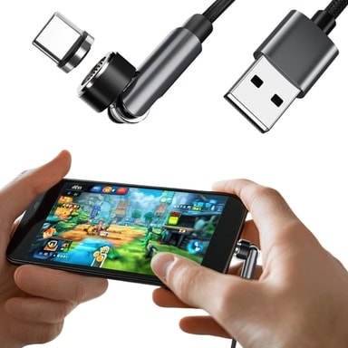 Magneettikaapeli mukana tulevalla USB-C-liitännällä, joka tukee nopeaa latausta 5V/3A asti ja nopeaa tiedonsiirtoa. Kääntyvän rakenteen avulla voit löytää hyvän kulman latauksen aikana. Kaapelia voidaan käyttää myös muihin magneettiliittimiin, kuten Lightningiin tai Micro-USB:hen.