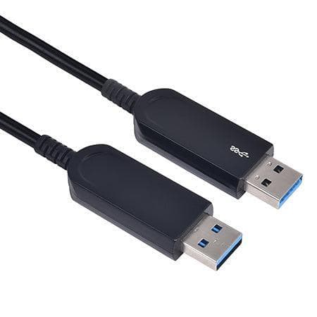 Kuitukaapelissa on samat tavalliset USB A -liittimet, joten voit liittää sen tavallisen USB A -kaapelin tapaan tietokoneeseesi tai muihin laitteisiin. Täyttääkseen tietyt vaatimukset, kaapeli on OM3 Multimode 4 -johtimiskuidun ja 7-johtimisen kuparikaapelin hybridi.