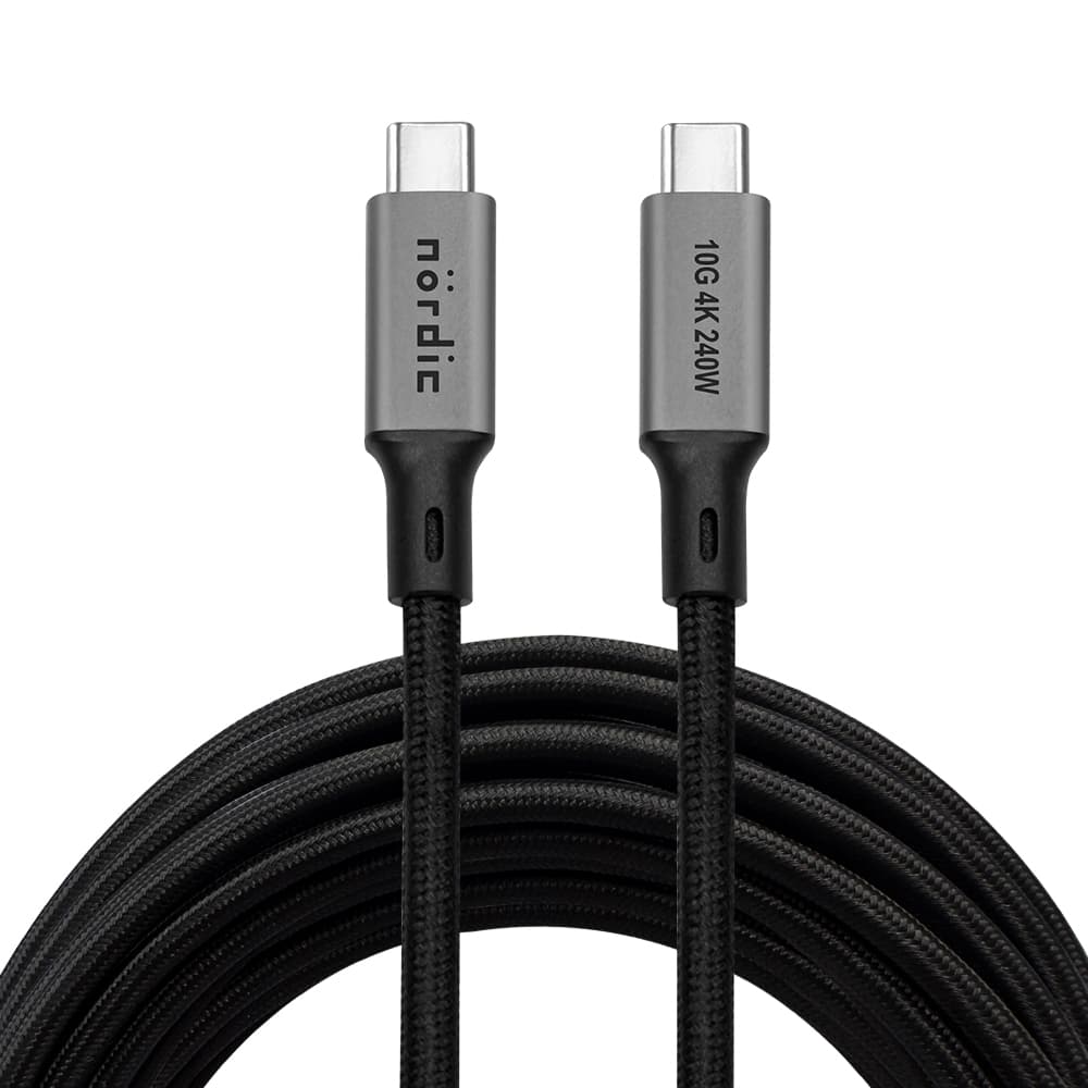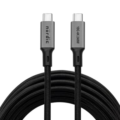 NÖRDIC USB 3.2 Gen 2 -kaapeli tukee 10 Gbps tiedonsiirtoa, 240 W (48 V 5 A) virransyöttöä ja 4K-videota. Sopii kaikille kannettaville tietokoneille, pöytätietokoneille, macbookeille, tableteille ja älypuhelimille, joissa on USB-C- tai Thunderbolt-tuki. Yhteensopiva iPhone 15:n, MacBook Pron/Airin, Samsung Galaxyn ja muiden kanssa. Kaapeli tuottaa jopa 240 W tehoa kannettavan tietokoneen lataamiseen tai näytön ohjaamiseen. Yhteensopiva laitteiden kanssa, joiden teho on 240/200/180/140/100 ja 60 W.Tekniset tiedot: