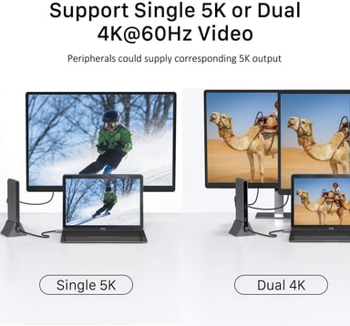 • Tukee DisplayPort 1.2a -protokollaa (8 kaistaa, HBR2 ja MST)