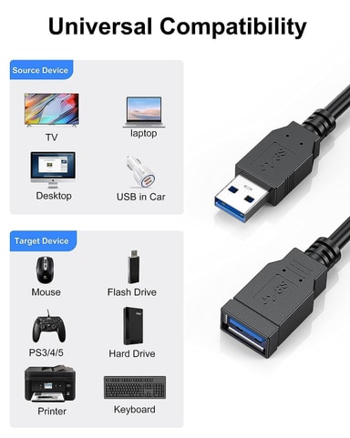 NÖRDIC USB 3.0 tyypin A jatkokaapeli 50 cm mahdollistaa USB-A-signaaliketjun jatkamisen ilman ulkoista virtalähdettä tai ohjaimia.Tekniset tiedot:
