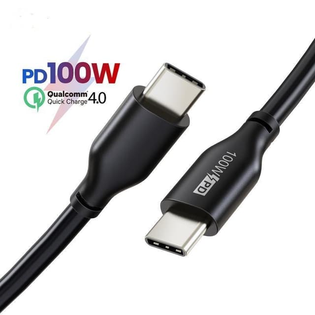 • NÖRDIC USB C–USB C -kaapeli, 1 m, 5 A, 100 W, USB2.0 E-Markilla, musta pikalatauskaapeli