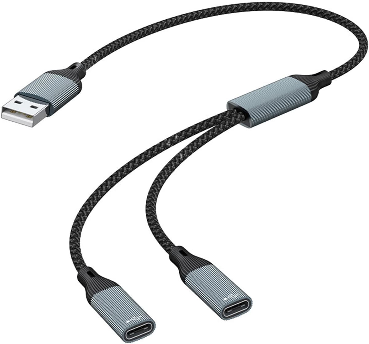 Tämä tuote on USB-sovitin, joka muuntaa yhden USB-A-portin kahdeksi USB-C-portiksi. Täydellinen, kun haluat liittää useita USB-C-laitteita samanaikaisesti tietokoneeseen, laturiin tai muuhun USB-A-porttiin. Yksinkertainen ja kätevä ratkaisu käyttömahdollisuuksien laajentamiseen.