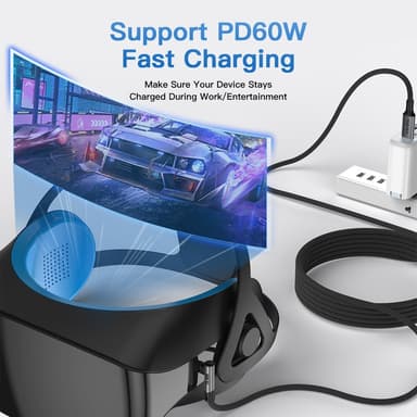 Tämä tuote on 5 metrin NÖRDIC VR Link -kaapeli, joka on erityisesti suunniteltu Quest- ja Quest 2 -kuulokkeille pelitietokoneeseen liittämistä varten. Kaapeli tarjoaa vakaan ja nopean yhteyden, ja siinä on tuki USB3.2 Gen1:lle, 20Gbps siirtonopeudelle, 100W pikalataukselle ja 4K60Hz videoulostulolle. Joustavan pituuden ansiosta voit liikkua vapaasti ilman rajoituksia VR-pelejä pelatessa. Se on yhteensopiva USB3.0-, USB3.1- ja USB3.2 Gen1 -standardien kanssa, mikä tekee siitä monipuolisen ja tulevaisuuden kestävän.
