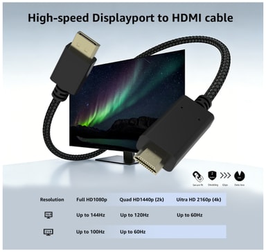 Punottu Sandstrøm DisplayPort – HDMI 1.4 -kaapeli (1 m) tarjoaa nopean 18 Gbps tiedonsiirron, kullatut liittimet ja 4K60 Hz tuen – täydellinen pelmonitorien kytkemiseen tietokoneisiin minimaalisella tiedonhäviöllä ja häiriösuojauksella.Tutustu ominaisuuksiin