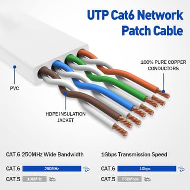 NÖRDIC Cat6 U / UTP Flat-verkkokaapeli 50cm 250mHz kaistanleveys ja 10Gbps: n lähetysnopeus valkoinenTutustu ominaisuuksiin