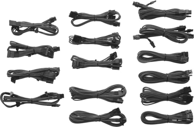 Corsair Cable Kit -kaapelisarja sisältää tyylikkäät mustat virtalähdekaapelit, jotta pääsisit eroon rumista ja epämääräisin värein varustetuista vakiokaapeleista.Tutustu ominaisuuksiin