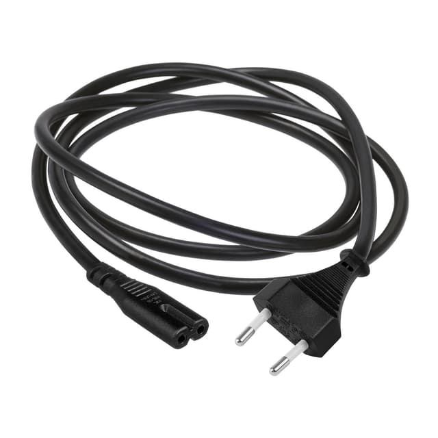 Laitekaapeli, jossa euroliitin uros - 2-napainen laiteliitin naaras. Käytetään maadoittamattomiin sähkölaitteisiin esim. TV, DVD, radiot jne.