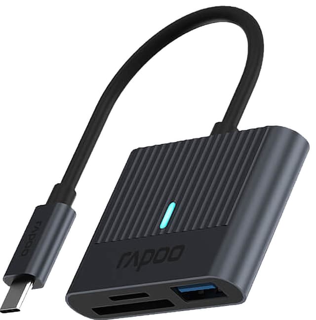 RAPOO UCR-3001 3-in-1 USB-C -muistikortinlukija tarjoaa elegantin alumiinirungon, joka näyttää hyvältä ja on myös kestävä. Se on loistava ratkaisu SD/microSD-muistikorttipaikan lisäämiseen tietokoneeseen, kannettavaa tai MacBook-laitteeseen. Siinä on myös USB-A-portti lisälaitteiden yhdistämiseen.