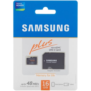 • Samsung Plus 16GB microSDHC muistikortti ja SD-sovitin