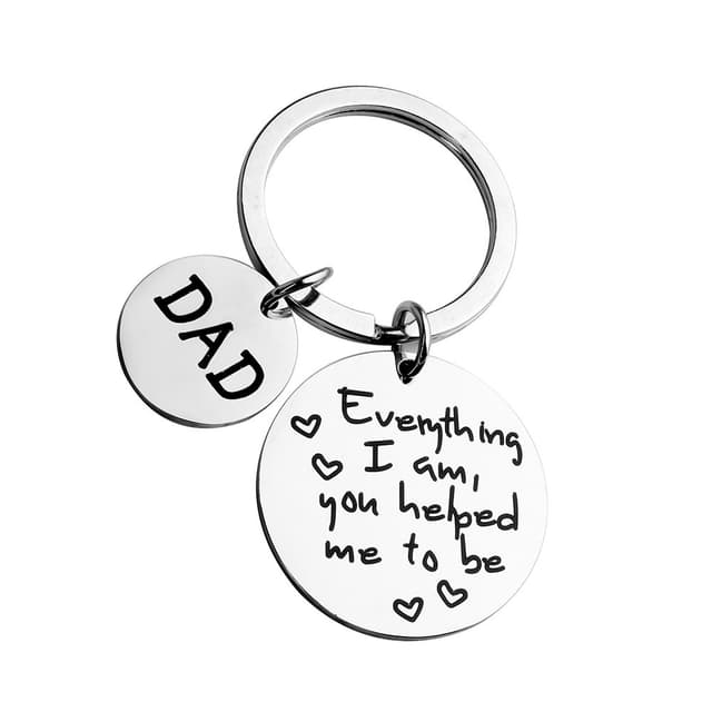 Avaimenperä sopii autojen, toimiston ja kodin avainten järjestämiseen. Ihana lainaus ""Everything I Am, You Helped Me to Be"", täydellinen lahja isälle. Valmistettu ruostumattomasta teräksestä, kestää hyvin ruostetta ja korroosiota.