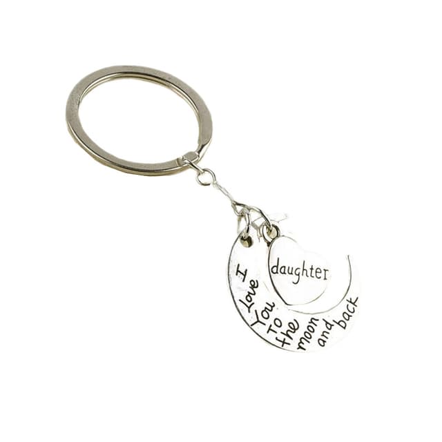 ""Tytär, rakastan sinua kuuhun ja takaisin"" kaiverrettu avaimenperä on yksi parhaista lahjoista tyttärellesi. Hanki sellainen ja näytä tyttärellesi, kuinka tärkeä hän on sydämessäsi.