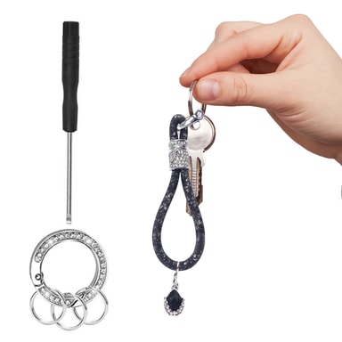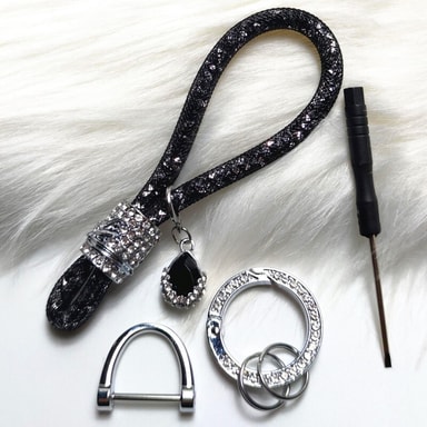 Denna nyckelring kan användas för att hänga upp dina bilnycklar, familjenycklar, dekorativa hängande prydnadsföremål, busskort och så vidare, en absolut bra hjälpreda för att hantera dina nycklar. Glitter rhinestone design, attraktiv och elegant.
