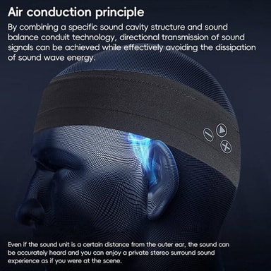 Tekniset tiedot - Materiaali: 92 % nailonia + 8 % elastaania - Päänauhatekniikka: saumaton neulonta - Bluetooth-versio: 5.3 - Akun kapasiteetti: 200mAh - Latausaika: noin 2 tuntia - Toistoaika: noin 8 tuntia - Valmiusaika: noin 10 päivää - Tehokas kantama: 10 m - Kaiuttimet: korkean äänenlaadun dynaaminen kaiutin - Kaksoismikrofonit, joissa on melunvaimennus, ilmajohtotekniikka - Vakaa ja mukava käyttää, säädettävä koko - IPX5 vedenkestävä, ihoystävällinen ja hikeä imevä