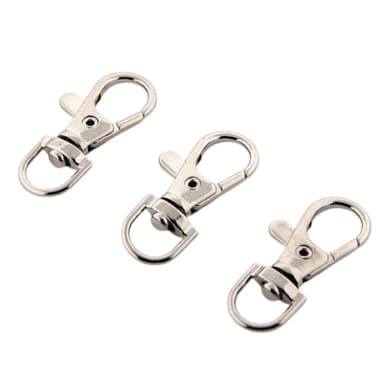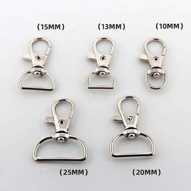 Näitä kääntyviä napsautuskoukkuja voidaan käyttää laajalti erilaisissa käsitöiden valmistuksessa, kuten kaulanauhojen, avainnippujen, maskien ja laukkujen valmistukseen, käsilaukkuihin, lompakoihin, koiran kaulapannoihin, koruihin jne. Valmistettu sinkkiseoksesta, kevyt ja tukeva.