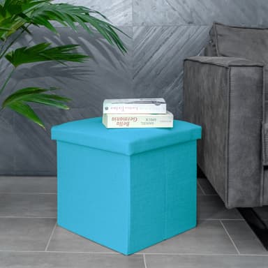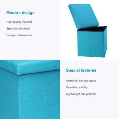 Moderni ja yksilöllinen muotoilu monitoimilaitteella. Tämä kaunis järjestelylaatikko varmistaa, että sisältö säilyy aina turvallisesti ja siististi ja tarjoaa myös lisäistuimia. Säästät tilaa, mutta voit myös tarjota vieraillesi tämän epätavallisen ja vaikuttavan istumavaihtoehdon. Mukana tulevan kannen ansiosta tavarasi pysyvät lisäksi suojassa pölyltä ja lialta. Pidä tavarasi aina hyvin säilytettynä ja täydellisesti järjestyksessä tämän kauniin kuutioistuimen avulla!