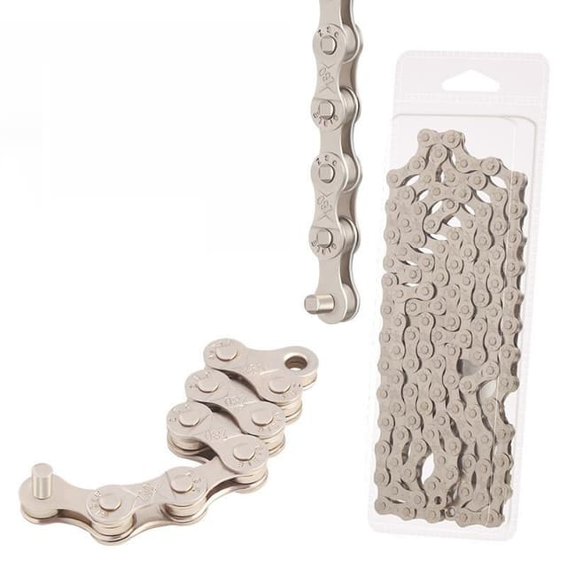 Kestävästä hiiliteräsmateriaalista valmistettu polkupyörän ketju on tukeva ja ruosteenkestävä. Helppo irrottaa tai asentaa. Laita se pyörällesi ja nauti mukavista pyöräilytunteista.
