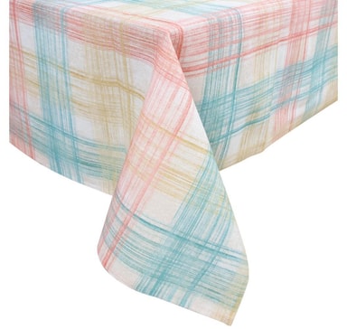 Pöytäliina LONETA 136x220cm, pinkki- neliö. Materiaali: 50% polyesteri, 50% puuvilla, kangas 356. HOITO: voidaan pestä pesukoneessa 30 asteen lämpötilassa.
