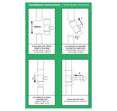 - Kerääjää voidaan käyttää PVC- ja metallisyöksyputkiin, joiden halkaisija on 90 mm
