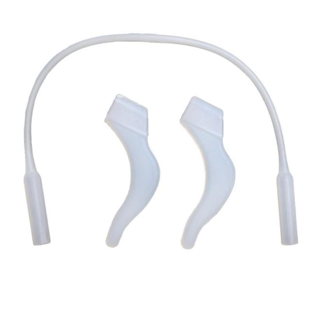Detta set innehåller ett par halkskyddskrokar och ett fast rep, som är gjorda av högkvalitativa silikon- och hartsmaterial, som effektivt kan förhindra glidning och fixera dina glasögon bättre.