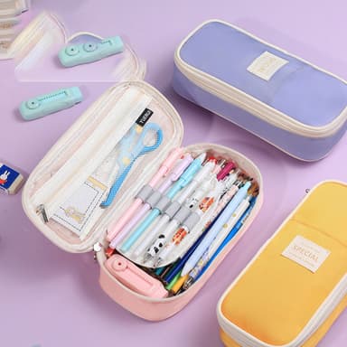 Ensiluokkainen polyesterimateriaali: Korkealaatuisesta polyesteristä valmistettu penaali kestää päivittäistä käyttöä. Kangas kestää repeytymistä, repeytymistä ja hankausta, joten kirjoitustarvikkeesi pysyvät suojattuna. Tukeva vetoketjukiinnitys tarjoaa turvallisen säilytyksen ja estää vahingossa tapahtuvat roiskeet.