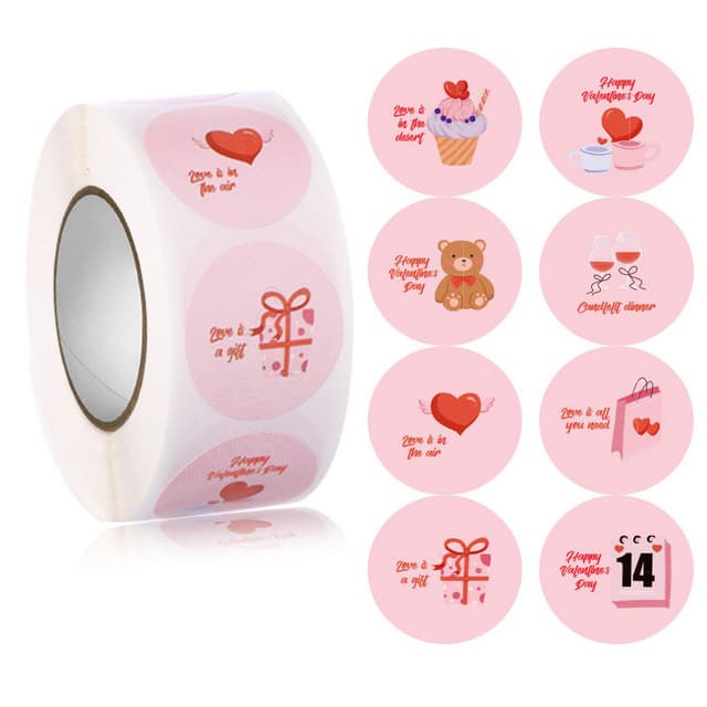 Pyöreitä lahjatarroja tulee yhteensä 500 kpl, jokaisen tarran halkaisija on noin 2,5 cm. Täydellinen lisäämään iloisen ja lämpimän tunnelman ystävänpäivään, syntymäpäiväjuhliin, häihin jne.