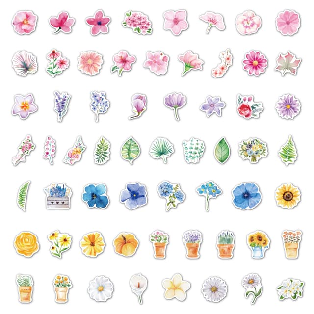 60 tarraa, joissa kukkia ja lehtiä eri kuvioissa. Nämä tarrat sopivat useimpien esineiden koristeluun. Lähes ei kaksoiskappaleita.